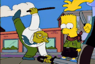 Oh. Oh, hi, Bart. I'd gladly share these sweet cookies with you... if only you would help me remove this ribbon. - Here's a knife. - Oh, thank you. Now let's all share the goodness. Share this.