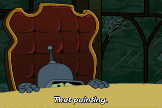 That painting. The eyes are watching me. Hmm. It has motor eye sensors attached to motion detectors. So does my butt but I don't frame it and put it on the wall. Although...