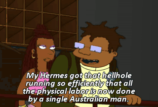 My Hermes got that hellhole running so efficiently that all the physical labor is now done by a single Australian man.