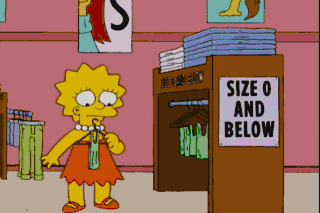 (MOANS) This store makes me feel even worse about myself. (UPBEAT MUSIC PLAYING) Oh! I heard she's back to her birth weight.
