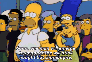 Soon, one man will emerge triumphant. He will drink naught but champagne, while his opponent tastes bitter defeat in this oft cruel game. It's okay, son. You can recover.