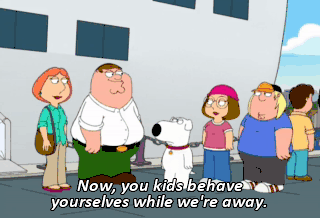 Now, you kids behave yourselves while we're away. Yeah, be good till we get back, and, Brian, stay out of the cat box. Stay out of the cat box.