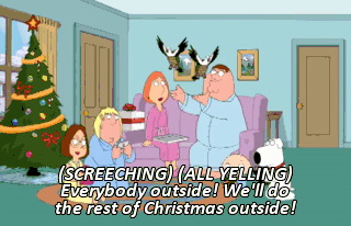 (SCREECHING) (ALL YELLING) Everybody outside! We'll do the rest of Christmas outside! Go, go, go!