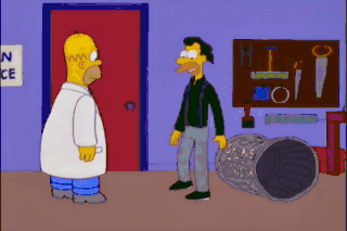 Next! Yes, uh, my car seems to have broken down, and I was wondering if I could use your-- Oh! That's a pushing motion! Simpson, you're not a licensed chiropractor.