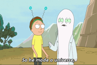 So he made a universe, and that guy is from that universe. You're my battery! And that guy made a universe. And that's the universe where I was barn,