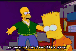 Come on, Dad. It would be weird. This isn't working at all. It's hopeless. Wait a second. Hmm. "Cosby's first law of intergenerational perversity.