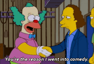 You're the reason I went into comedy. If it weren't for you, I'd be a doctor. Yeah, yeah, right. Thanks.
