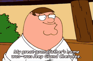 My great-grandfather's name was--was Jeep Grand Cherokee. Uh, I mean, Chief Grand Cherokee. He was a rainmaker. Hey-yah, ho-yah, ho-yah, ho-yah hey-yah, hey