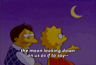 the moon looking down on us as if to say-- My first kiss! I always wondered what it would be like. This ought to shut her up.