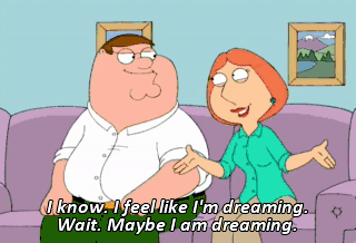 I know. I feel like I'm dreaming. Wait. Maybe I am dreaming. That means I can do whatever I want without consequences. What are you doing? I just adopted 30 puppies. (LAUGHING)