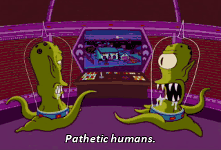 Pathetic humans. They're showing a Halloween episode. In November! Who's still thinking about Halloween? We've already got our Christmas decorations up. BOTH: Ho, ho, ho! Merry Christmas!