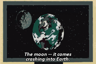 The moon -- it comes crashing into Earth.