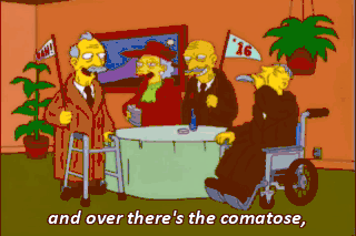 and over there's the comatose, and the cool comatose. Hey, who's the tall drink of Maalox? Are you young ladies here to visit your mothers?