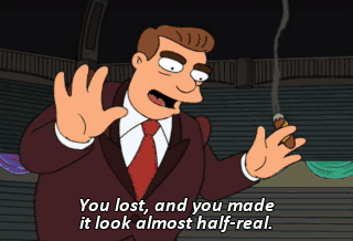 You lost, and you made it look almost half-real. I want you to have this card good for ten percent off at Bed, Bath and Beyond. Yes... I'm the greatest... the greatest!