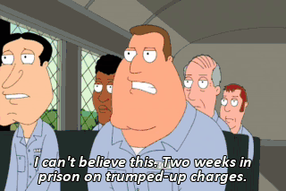 I can't believe this. Two weeks in prison on trumped-up charges.