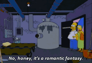 No, honey, it's a romantic fantasy. I imagine I'm the janitor, and you're... the janitor's wife, who has to live with me in the utility room.