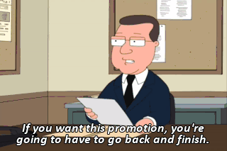 If you want this promotion, you're going to have to go back and finish.