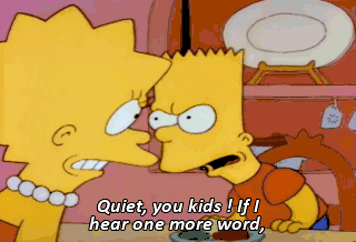 Quiet, you kids ! If I hear one more word, Bart doesn't watch cartoons and Lisa doesn't go to college.