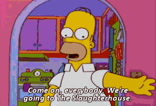 Come on, everybody. We're going to The Slaughterhouse. You didn't need to knock the food on the floor. Didn't I?