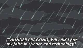 (THUNDER CRACKING) Why did I put my faith in science and technology?