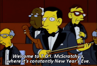 Welcome to T.G.I. McScratchy's, where it's constantly New Year's Eve. Here we go again.