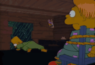 Don't let go of me, Bart. Milhouse, it's not that far to the ground. The rain's probably softened it up a bit. No, Bart, no !