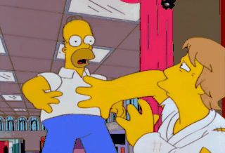 Homer Simpson, nerd-buster, and I'm gettin' you out of here.