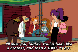 I'll miss you, buddy. You've been like a brother, and then a sister, to me.