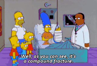 Well, as you can see, it's a compound fracture. The leg must remain motionless. Otherwise, a hunk of bone could zoom right to her brain. I can't be in the hospital. Tomorrow is laundry day.