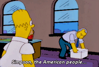 Simpson, the American people... have never tolerated incompetence in their public officials. You are going to crash and burn, my fatheaded friend. See? We're still friends. Come on. Give us a cuddle.