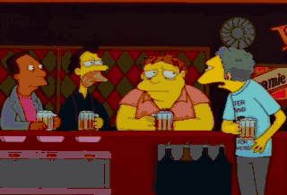 To Marge! Moe, what do you recommend for severe depression? Booze, booze and more booze. Huh. Nothin' like a depressant to chase the blues away.