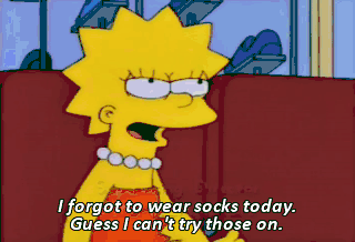 I forgot to wear socks today. Guess I can't try those on. Yeah, no problem. You can wear the store sock. Ew.