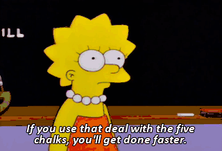 If you use that deal with the five chalks, you'll get done faster. Thanks, but I prefer the honest way. Whatever. Smell you later.