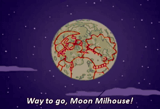 Way to go, Moon Milhouse! It's as easy as crushing an ant. You know the... (GRUNTING) Whoa! Take my wallet and leave me alone!