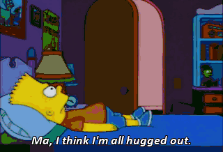 Ma, I think I'm all hugged out. Ah, one more. Hello, Queen Lisa. Bart! What are you doing in my room? Lisa, certain differences-- rivalries, if you will--