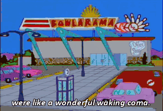 were like a wonderful waking coma. Hey, Homer. Hi there, Homer. Hi there, Homer. Hi, Homer. - Hi there, Homer. - Hi. Mmm. Bowling fresh.