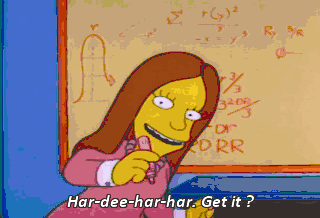 Har-dee-har-har. Get it ? Oh, yeah. Hi, guys. Great to see ya. Get lost, Poindexter. Yeah, beat it, Professor.
