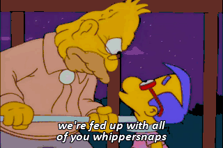 we're fed up with all of you whippersnaps We're trying to get some sleep here it's almost 6:15 What's the matter with Don't you treat us lIkE Can't you just lay off We're sick of all of you