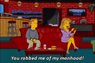 You robbed me of my manhood! That's petty theft. Ooh! Don't go there. Don't Go There will be right back. Oh, no it won't. Wait! There's a commercial!