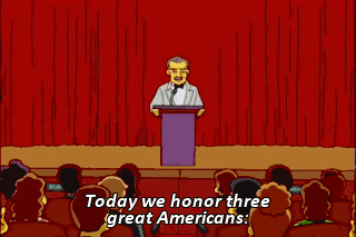 Today we honor three great Americans: Jazz legend Ornette Coleman. Playwright Arthur Miller. Yes! Yes! And all-around genius Lisa Simpson. We're not worthy. We're not worthy.