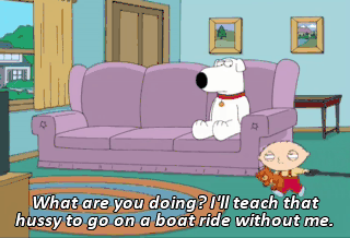 What are you doing? I'll teach that hussy to go on a boat ride without me.