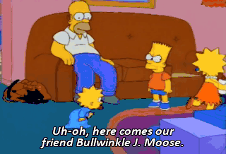 Uh-oh, here comes our friend Bullwinkle J. Moose. Bullwinkle's antler's sprung a leak.