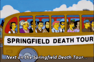 Next on the Springfield Death Tour... is the home of Marge and Homer Simpson, also known as "H-Diddy and his Murder Ho." Go away! No, wait, wait. That's a suggestion, not a threat.
