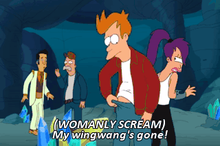 (WOMANLY SCREAM) My wingwang's gone! My girls! My antenna! My kajigger! My gonopores!