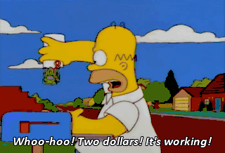 Whoo-hoo! Two dollars! It's working! I don't feel any happier. How about you? Mmm, a little. Oh, you got to see this. It's so cute what she does. Be the baby, kitty. Go on. Be the baby.