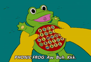 PHONIC FROG: Aw. Buh. Kkk. Huh-Oh-Muh-Eh-Er. (LAUGHING) That's me. Huh-Oh-Muh-Eh-Er. This is Huh-Oh-Muh-Eh-Er's doctor. He's too sick to work today.