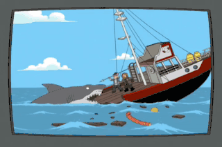 Stop eating our boat, Jaws! I'm gonna eat your boat, and then I'm gonna eat you guys! (ROARING) Oh, my God! What's that?