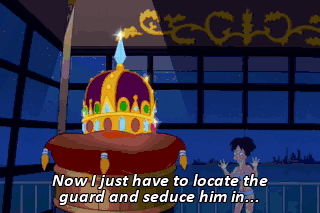 Now I just have to locate the guard and seduce him in... Four seconds? GUARD: Who goes there? Three, two, one.