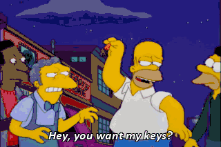 Hey, you want my keys? Get 'em now, jerks. So long, jerks! Running after the car, huh? Let's see if you can follow this! That's it.