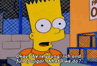 Okay. We're young, rich and full of sugar. What'll we do? Let's go crazy Broadway-style! Yeah! SpriNgfield, springfield it's A hell of a town the School yard's up and The shopping mall's down